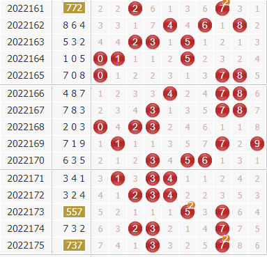 3d第22175期开奖号码是737,开出了大小大,奇奇奇,和值是17,和尾是7,开出了组三。