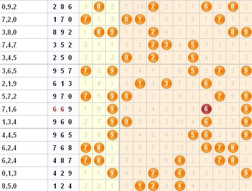 和值分析:上期和值数为7点,分析和值大小在一区和值数走向,分析近期和值走势,估计本期和值幅度为下降走势 ,分析上期和值大小,本期可防二区和值,防余1和值13点。