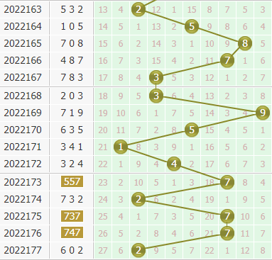 结合走势来看,目前个位上质数号码达到了近30期内从未有过的高度,目前质数经过多次连开尝试爆发出了最大的热度,现在已经连续开了5期了,预计还会继续热开下去,因此本期合数的表现就相对不怎么看好了,其中,0号和6号都是遗漏值达到了20多期的大冷号,都不太看好,热号7由于过多次的频繁开出,本期不看好7号出号。