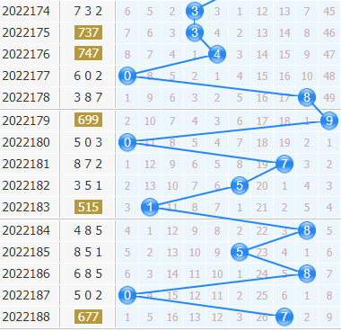 福彩3d第2022188期开奖号码是677,十位上开出了7号球,开出了奇数、小数、1路号码。