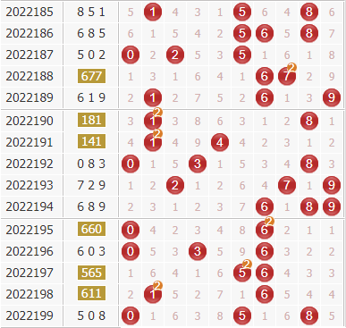 福彩3d第2022199期开奖号码是508,开出了大小大、奇偶偶组合,和值是13,202路号码。