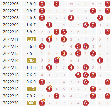 百位:上期百位开出了间隔2期的小偶数0号球,偶数号码也是刚刚开出,不过百位上奇数开出更多,看好奇数号码。本期百位推荐号码:123567