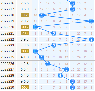 福彩3d第2022231期开奖号码是660,十位上开出了6号球,开出了偶数、大数、0路号码。
