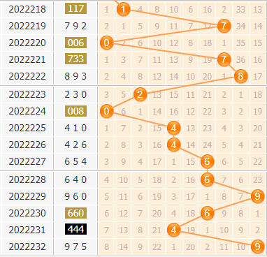号码上期是回暖开出,整体来看,近期号码还是走热居多的,开出也是小间隔为主,本期也看好号码的走热;上期0路号码开出,而且0路号码在百位上开出本来就强势,本期也要看好0路号码的继续开出。