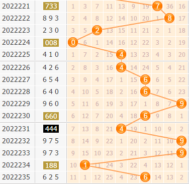 3d第22235期开奖号码是625,百位上开出了6号球,开出了大数、偶数、0路、合数号码。