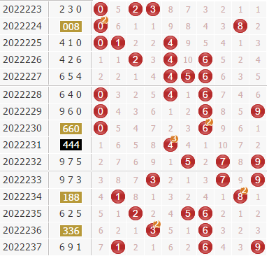 3d第22237期开出号码为691,开出了大大小、偶奇奇组合,和值是16,和尾是6,组六形态。