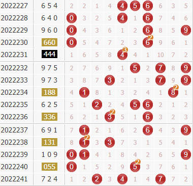 十位分析:根据多年来对十位杀号经验,推荐以下杀号技巧绝杀本期十位号码呈现给大家,上期开奖号十位+上上期开奖号十位的和取尾数杀本期十位即9,隔七期开奖号十位杀本期十位即1,上期开奖号跨度杀本期十位即5,上期开奖号百位杀本期十位即2,上期开奖号十位杀本期十位即4,十位杀号综合推荐91524,绝杀程度从左到右依次降低,谨慎参考。