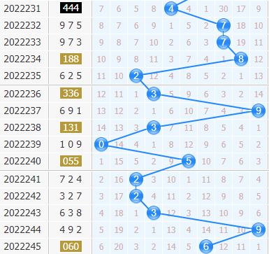 福彩3d第2022245期开奖号码是060,十位上开出了6号球,开出了偶数、大数、0路号码。