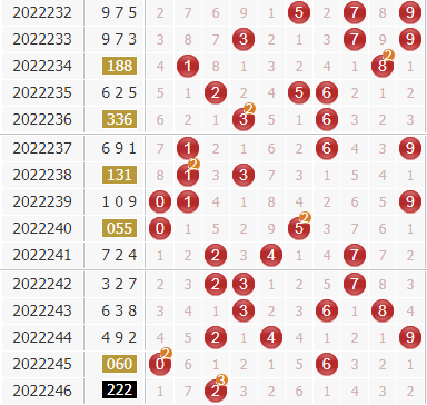 福彩3d第2022246期开奖号码是222,开出了小小小、偶偶偶组合,和值是6,222路号码。