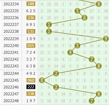 福彩3d第2022248期开奖号码是197,个位上开出了7号球,是一个大数、奇数、1路号码。