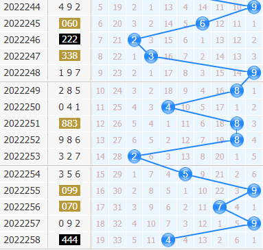 福彩3d第2022258期开奖号码是444,十位上开出了4号球,开出了偶数、小数、1路号码。