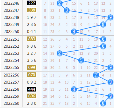 福彩3d第2022260期开奖号码是280,十位上开出了8号球,开出了偶数、大数、2路号码。