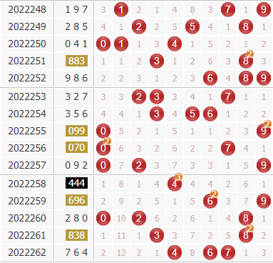 百位分析:根据多年来对百位杀号经验,推荐以下杀号技巧绝杀本期百位号码呈现给大家,当前期尾号乘以3加3后取个位杀本期百位即2,上期开奖号的百位乘以7加7后取个位杀本期百位即5,上期开奖号跨度杀本期百位即3,隔六期百位杀本期百位即0,上期和值-3取尾数杀本期百位即4,百位杀号综合推荐25304,绝杀程度从左到右依次降低,谨慎参考。