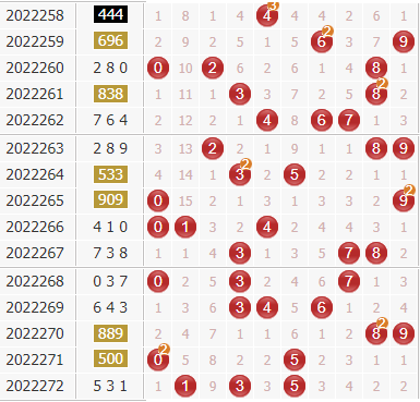 3d第22272期开出号码为531,开出了大小小、奇奇奇组合,和值是9,和尾是9,组六形态。