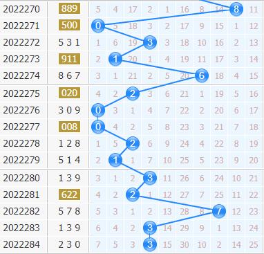上期十位上3号球开出,遗漏值为0,而近5期内号码遗漏值分别为7、2、25、2、0,近期号码的遗漏值总体来说是偏小的,只有一个大冷号的出现,由于走势上连续两期热码的开出,有一定程度上会带动冷温码的活动,而热号连续爆发开出的可能性在相对降低,建议本期主杀热码。