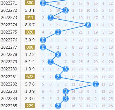3、根据上期试机号和尾+上期开奖号跨度所得的尾数杀本期开奖号十位,3+7=10,所以本期十位杀掉0号球的开出。