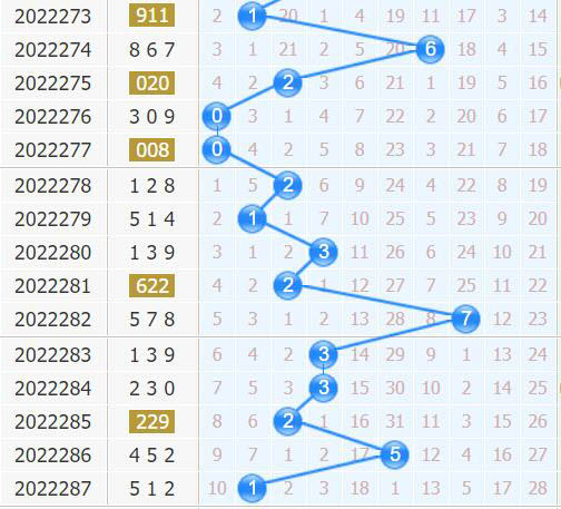 福彩3d第2022287期开奖号码是512,十位上开出了1号球,开出了奇数、小数、1路号码。
