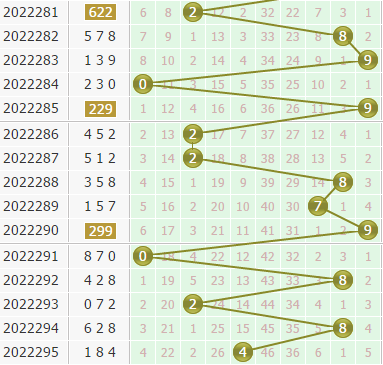 1、根据近5期开奖号个位相加所得的尾数杀本期开奖号,0+8+2+8+4=22,本期个位杀掉2号球的开出。