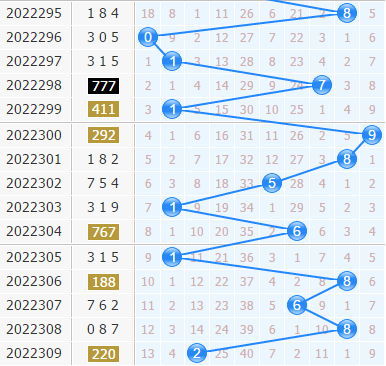 号码上期也是走小的,之前的大小号码开出差不多的,正好之前大号码一口气三期的开出,现在小号码开出,轮到小号码连开的可能性很大。上期号码也是冷号的开出,十位上近期冷号比较活跃,看好一下大遗漏的号码开出。