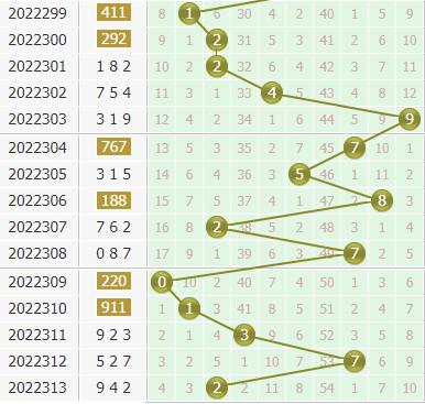 第2022314期流星雨3d个位杀号: