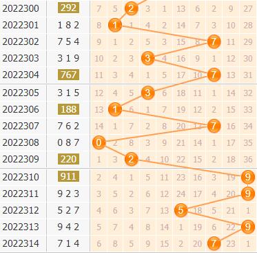 百位杀号:上期百位开出号码7号,出现了2点小振幅回落的现象,参考近5期振幅表现,分别为7-0-4-4-2,振幅开出点数呈现递减趋势,逐渐在中后段位置表现出现稳定开出的表现,由于近期大振幅会存在间隔开出的情况,本期可能出现大反弹,建议主杀极小振幅点数落点的号码。