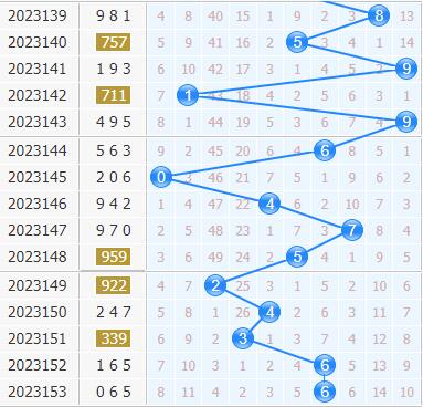 福彩3d第2023153期开奖号码是065,十位上开出了6号球,开出了偶数、大数、0路号码。