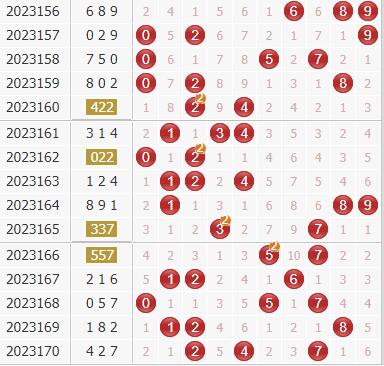 3d第23170期开出号码为427,开出了小小大、偶偶奇组合,和值是13,和尾是3,组六形态。