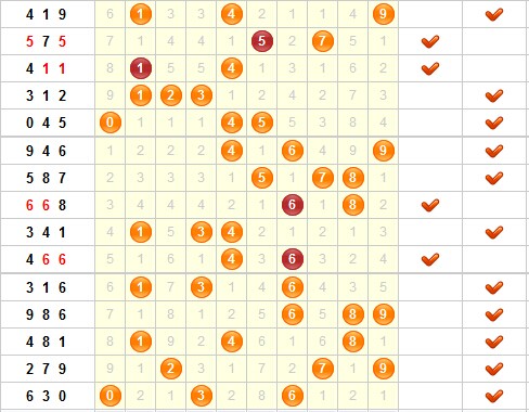个位分析:开出0号大码,分析近期出号走向,小号返向出码上升,中号走势较冷,本期防中小号走势,重点防5、4。