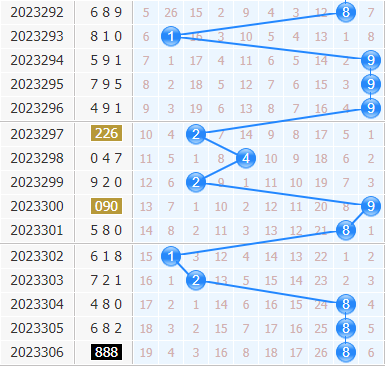 福彩3d第2023306期开奖号码为888,十位上开出8号球,开出了大数、偶数、2路号码。