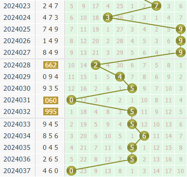 福彩3d第2024037期开奖号码是460,个位开出了0号球,开出了小数、偶数、0路号码。