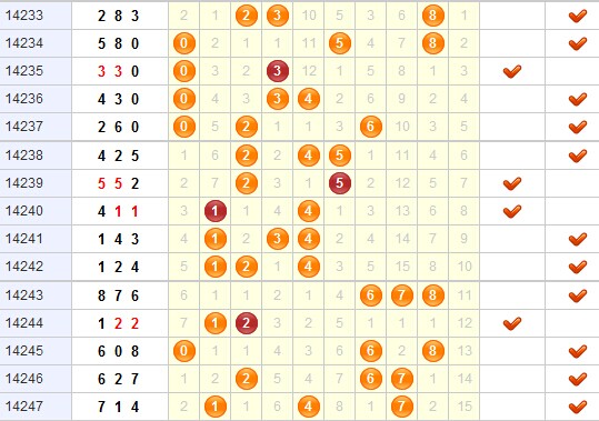 个位分析:根据多年来对个位杀号经验,推荐以下杀号技巧绝杀本期个位号码呈现给大家,上期开奖号十位杀本期个位即2,上期开奖号个位乘以个位得数的个位杀本期个位即8,上期开奖号和尾杀本期个位即3,隔一期开奖号的百位加上期的十位取和尾杀本期个位即9,隔三期开奖号个位杀本期个位即6,个位杀号综合推荐28396,绝杀程度从左到右依次降低,谨慎参考。