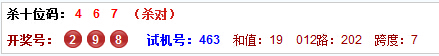 上期3d第2014253期太阳风十位杀号杀对3d第2014254期太阳风十位杀号:本期我们从3D之家十位走势图对十位进行杀号分析。从走势图中,我们可以直观地看到,3号球到目前为止已经遗漏了17期,对于3号球来说也算是个冷号了,预计还会再遗漏几期,所以杀掉;4号球到目前为止已经遗漏12期,4号球跟3号球的形式是一样的,所以杀掉;9号球是上期刚开过的号,本期太阳风给它杀掉。所以综上所述十位杀号:349综合分析:349以上3d杀号分析由3D之家杀号专家太阳风独家提供,请谨慎参考。