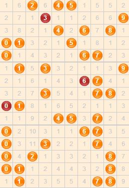 今天我们仍旧通过对综合走势图的分析进行本期的综合杀号。从走势图中,我们可以看出0号球在连开4期后,终于上期没有开出,意味着本期也极有可能不再开出,进入遗漏状态,所以杀掉它;2号球是个冷号球,在15期中只开出2期,已经有2期没有开出,根据冷号愈冷的原则,本期不开出,杀掉它;6号球本来是个很明显的规律球,后因其打破规律,自然本期就不开了,因此也杀掉它。综合杀号:026。