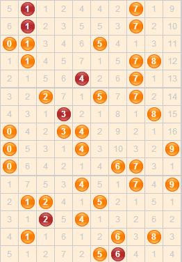今天我们从3D之家综合走势图来进行杀号分析。从走势图中来看,0号球和7号球都本应在上期开出,因为前者遗漏期数是4期,后者遗漏期数是3期,但均没有,本期可杀掉;2号球走势一直比较冷,遗漏期数不定,本期开出的可能性不大,可杀掉。综合百位杀号:027。