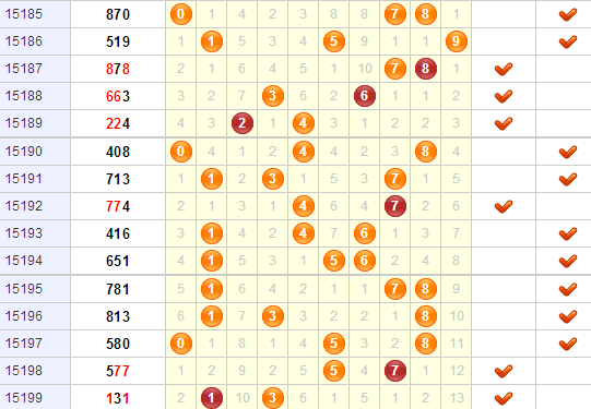 个位分析:根据多年来对个位杀号经验,推荐以下杀号技巧绝杀本期个位号码呈现给大家,隔一期开奖号的百位加上期的十位取和尾杀本期个位即9,隔三期开奖号个位杀本期个位即6,隔六期开奖号个位杀本期个位即7,上期开奖号个位乘以个位得数的个位杀本期个位即8,上期开奖号十位杀本期个位即2,个位杀号综合推荐96782,绝杀程度从左到右依次降低,谨慎参考。