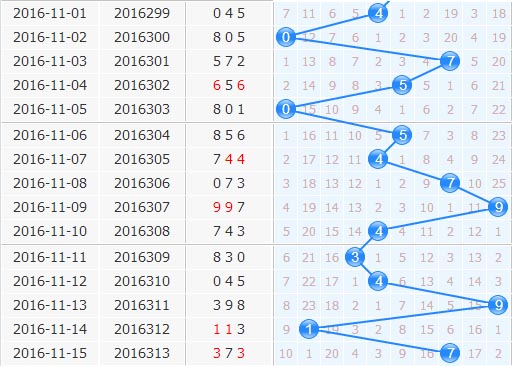 上期3d开奖结果开出了373,十位上开出的是一个大数7号,分析近期十位上的大小走势图来看,近期十位上的开出是呈大小的交叉开出,上一期开出的是一个大号,所以本期看好小号的开出。分析近期百位上的出号走势,近几期号码的振幅都是大号,本期看好大振幅的开出,7号已经在上一期开出过了,分析7号之前的走势,没有重复开出过,所以本期不看好7号;6号是一个冷号,之前就开出过一次,而且也有连续16期没有开出了,本期不看好6号的开出;结合一个杀码公式,上一期的十位乘以9再加上9之后取尾杀本期十位,所以本期杀掉2号。