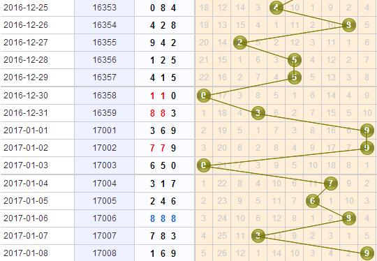 上期的开奖号码是169,个位上开出了9,看个位走势图,近期个位的出号都是集中在大数区域,小数开出的力度是不很强,在近五期里面,小数就开出了1,本期不看好小数的开出。3号的当前遗漏为1,分析3号的走势来看,3号属于一个温号,每次开出都是间隔了五六期以上,本期不是很看好它;4号上一次开出是间隔了,19期开出的,都是大间隔,现在4号遗漏为14,不建议关注4号;再结合一个杀码公式,上一期的十位杀本期个位,上一期十位开出了6号球,本期杀掉6号球。