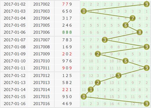 上期的开奖号码是469,个位上的开出近期一直是呈现奇偶的交叉开出,上一期是开出了9号,这是一个奇数,所以本期不看好奇数的连续开出。看0号的话,近期0号的开出都是间隔了很多期才开出,当前0号的遗漏是1,不看好0号开出隔期号;9号球在上一期已经开出来了,个位上重复号开出的不是很明显,也不强势,本期不看好9号的开出;再结合一个杀码公式,上一期的个位乘以3,所得的数取尾,杀本期的个位,上一期个位是开出了9,9*3=27,本期杀掉7号球。