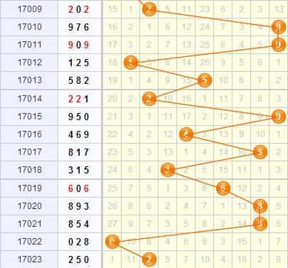 上期的开奖号码是250,百位上开出了2号球,结合近期的百位走势图分析,1号已经11期没有什么表现了,从1号总体开出情况看,近期保持持续走冷的阶段,本期不看好1号;2号是上期开出号码,很少在百位上有多次重复出现的号码,近期8号的重复开出和9号重复开出也是相隔了很多期,本期建议2号杀掉;最后说到8号球,近期出号还是比较积极的,在连开之后应该也需要几期休息一下,本期看淡8号球。