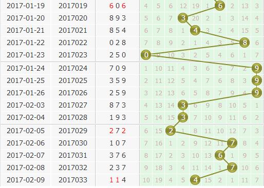 上期开奖号码为114,个位上开出了一个4号球;从个位整体走势图上看,目前个位上在小振幅点的范围内移动,但是结合之前开出的情况看来,大振幅开出的隐患依然存在,根据走向来看,本期严防大数来一个回马枪开出,重点关注大数5689,小数上主要放一个4号的邻码,因为近期邻码出的也不少,3号球还是要重点严防的。