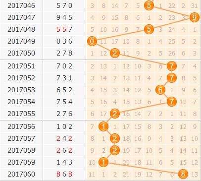 上期的开奖号码是868,百位上开出了8号球,结合近期的百位走势图分析,首当其冲注意到的是最热的1号和2号;可以参考百位上各个位置的走势,1号近30期走势都偏向冷号,相近时间开出号码持续时间也比较短,本期不看好1号隔期开出;2号可以参考7号球的情况,在3期走热之后也渐渐走冷,本期2号可杀;最后来看上期的开奖号8号,总体上作为冷号的时间比较长,本期不看好会回暖开出。