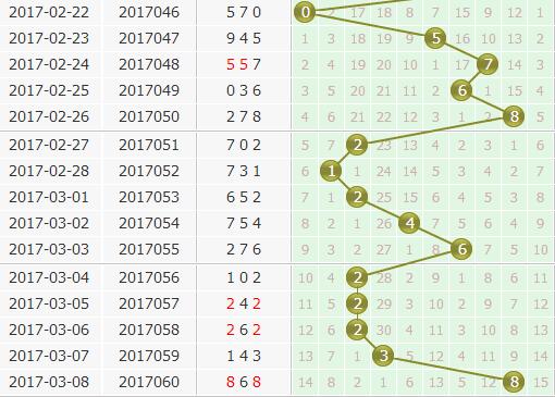上期的开奖号码是868,个位上开出了8号球,分析个位上的质合走势来看,近期合数开出的非常有规律,都是连续两期的开出,上一期是只开出了一期合数,本期看好合数的继续开出,不看好质数。5号球最近几次开出的间隔在不断的增强,走冷明显,本期不看啊后5号球的开出;3号球上一期开出是间隔了30,是冷号的回暖,但是近期冷号回补现象不频繁,本期不建议关注3号球;再结合一个杀码公式,上一期的个位乘以3取尾杀本期个位号码。上一期个位开出8,8*3=24,所以本期杀掉4号球。