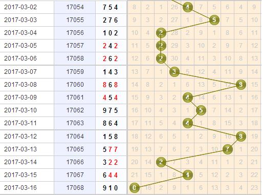 上期的开奖号码是910,个位上开出了0号球,分析近期个位上的奇偶走势来看,奇数号码最近一直是被偶数所打压的,开出的可能性非常的小,本期也不看好奇数的开出。上一期开出的0号球是一个大冷号,冷号不会连着开出,所以本期不看好9号球;3号球虽然之前有回暖,但是并没有要走暖的趋势,本期也不关注3号球的开出;再结合一个杀码公式,上一期的个位杀本期个位,上一期开出了0,所以本期杀掉0号球。