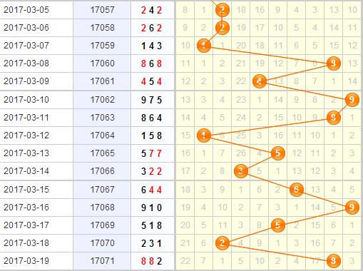 上期的开奖号码是882,百位上开出的是8号球,偶数号码已经在百位上连续两期开出了,但是偶数号码也没有再连开的可能了,近期最多就是两期连开,本期看好奇数号码。1号球的当前遗漏是7,上一期8号开出就是间隔了7期,本期看好1号球;0号球已经有连续22期没有开出了,最近百位冷号开出的还是比较热,本期继续关注0号球;5号球近期有走暖的趋势,开出间隔在缩小,本期看好5号球。