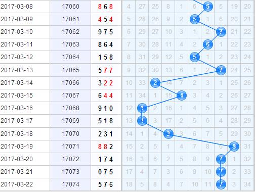 十位上开出了7号球,开出了一个奇数号码,虽然十位上奇数号码开出的非常热门,但是上一期已经是奇数号码在十位上连开了三期,已经是最大连开期数了,本期还是更看好偶数。6号球是7号球的邻码,十位上邻码一直都是频繁的开出,本期也看好6号球作为邻码的开出;9号球已经有连续34期没有开出了,是一个大冷号,最近冷号已经有三期没有开出了,本期看好9号球的回暖;4号球的当前遗漏是7,上一次开出4号球也是间隔了7期,本期看好4号球的同间隔开出。