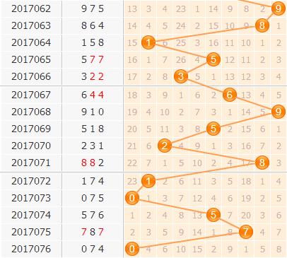 上期的开奖号码074,百位上开出了一个偶数号码0号球,近期振幅陡然拉大,总体走势上大振幅开出占据优势,本期首先关注两个相对较大振幅上的8号和9号;为了填补前中部分的空缺,本期小振幅出号的可能性也是存在的,这里需要防防近期已经遗漏许久的两码3号和4号。本期综合推荐百位号码:3489以上胆码百位分析由3d之家胆码专家小孔明独家提供,请谨慎参考。