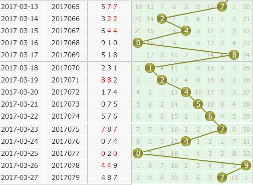 上期的开奖号码是487,分析近期个位上的大小走势来看,最近个位上大小数开出的力度都开始减弱,连开的能力也不像之前那样强势,本期不看好大数的继续开出。7号球是上一期的开奖号码,个位上重复号的开出是非常冷的,本期也不看好7号的重复开出;9号球上一次开出是间隔了32期,近期冷号回补的不多,本期不看好9号球的隔期开出;再结合一个杀码公式,上一期百位加1杀本期个位,上一期百位开出4,4+1=5,所以本期杀掉5号球。