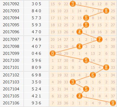 上期开出号码936,百位开出9号球。从百位上的走势来看,百位近期出现了一大一小交替开出地局面,目前已经持续五期了,上期开出大号9,本期重点看小号,因此建议杀一码7,7目前是百位上最冷的大号。重复号连续十一期未在百位上出现,本期百位重复号出现地几率依旧很低,建议杀掉上期开奖号9。2号球在百位遗漏36期,近期并没有开出迹象,本期百位杀2。