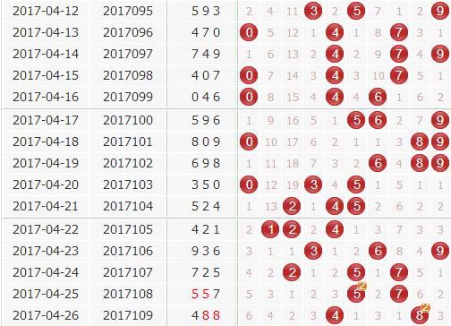 上期开奖号码是488,开出了小大大,偶偶偶的组三形态。从综合走势图上看,0号有6期没有出现,整体态势走向冷势,热度滑落的比较快,本期看淡0号;4号和8号都是上期的开奖号,4号由于近期的连开较多,本期不建议继续看好开出了;而8号近期总体走势冷,出号间隔都比较大,连开的能力不高,建议可杀;8号的邻码7号球这几期两者互相都没有什么交集,很难互相带出,本期杀掉7号。