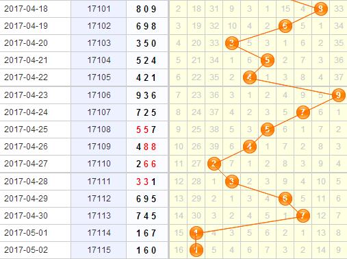 上期的开奖号码是160,百位上开出了1号球,上一期百位是开出了重复号,而且还是一个冷号开出之后的马上回补,根据走势来看,接下来不会开出大振幅,基本都是小振幅的开出。近期百位上邻码开出的比较热门,差不多没间隔个一两期都有邻码开出,本期重点看0号球和2号球;4号球的当前遗漏是6,之前4号球有间隔6期开出过,看好6号球。